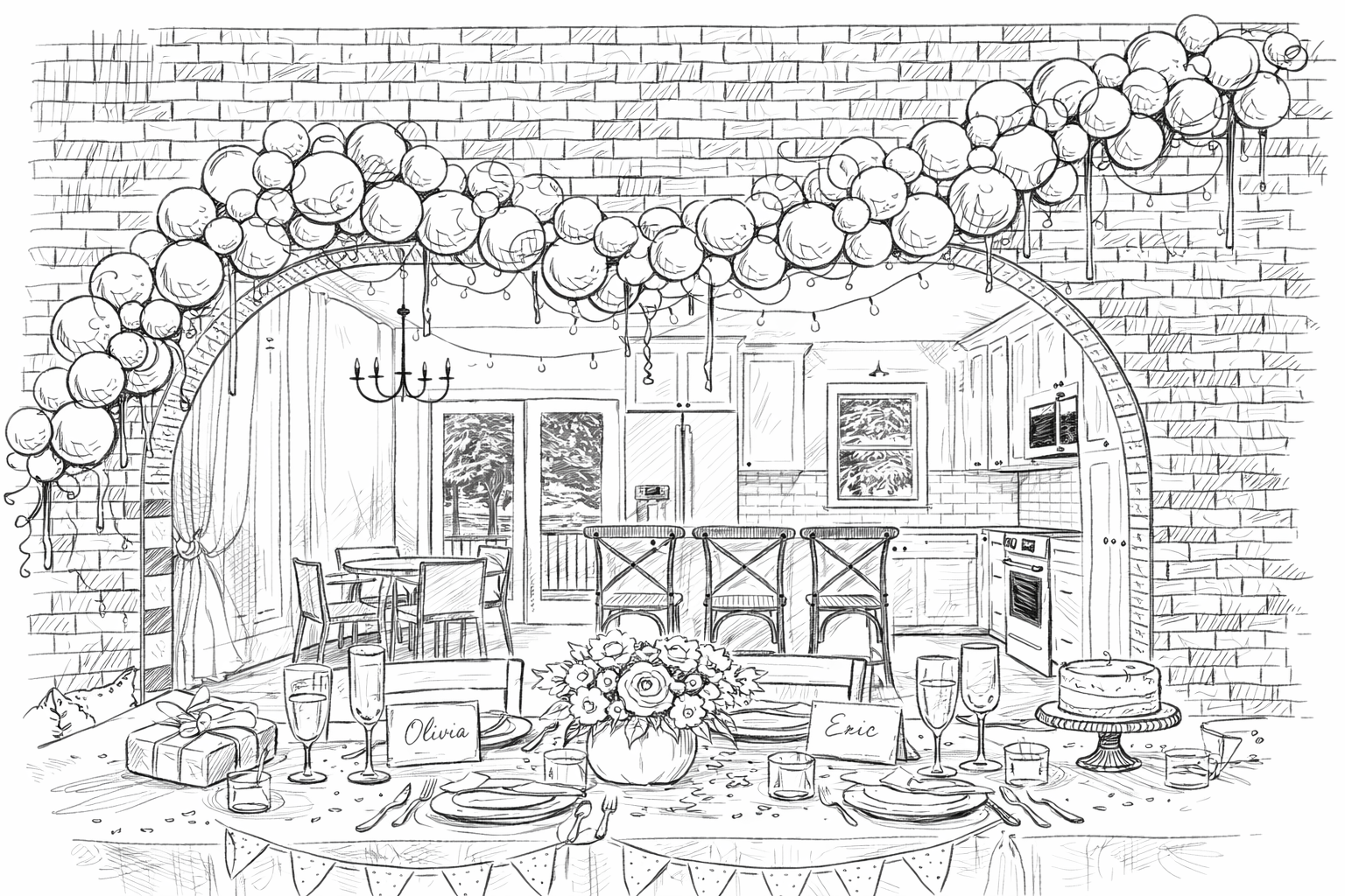 Custom Décor & Installations: Balloon arches, backdrops, kraft paper banners, floral arrangements,